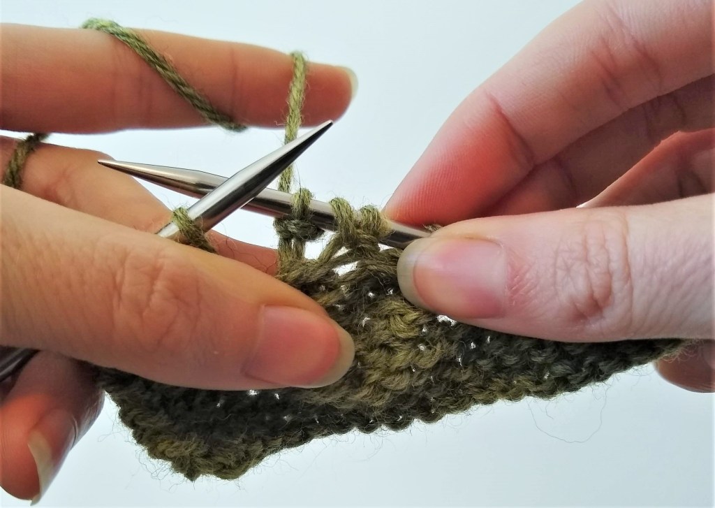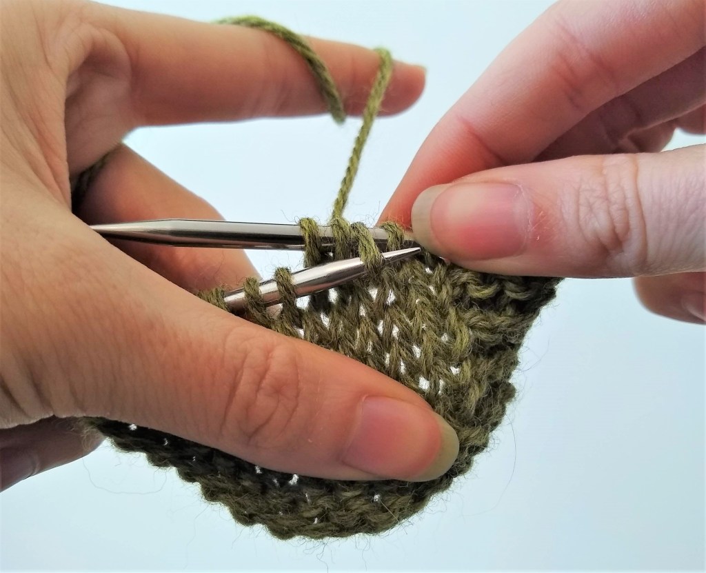 Row 3: Knit the three stitches.