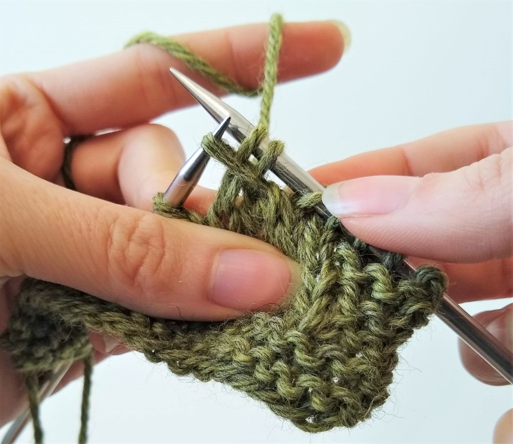 Insert left needle tip into the stitch that was slipped.