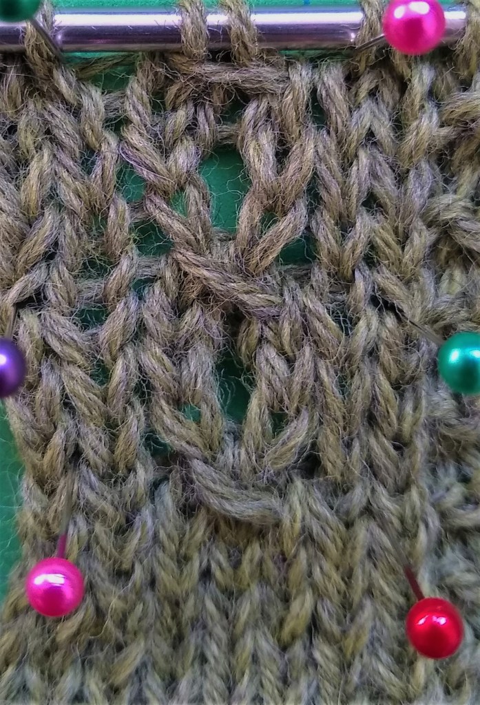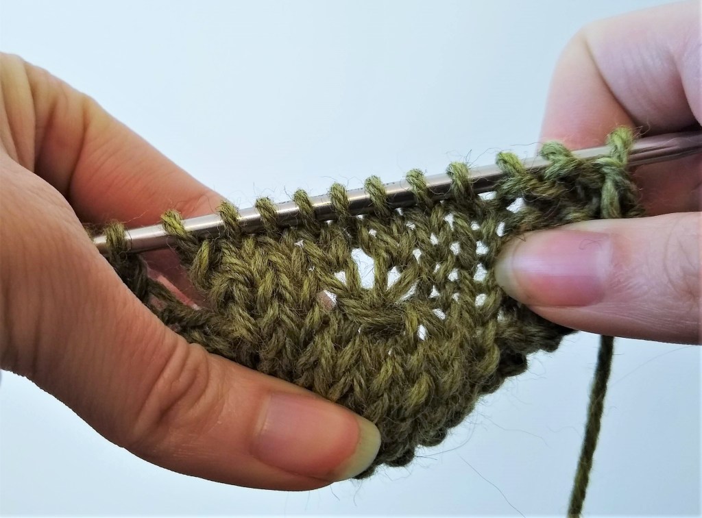 Once you finish working Row 4, you’ve completed one repeat of the eyelet mock cable!